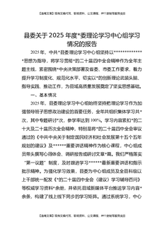 县委关于2025年度党委理论学习中心组学习情况的报告.docx