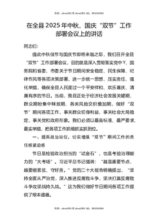 在全县2025年中秋、国庆“双节”工作部署会议上的讲话