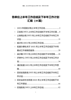 (40篇)各单位上半年工作总结及下半年工作计划汇编