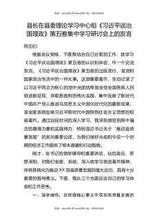 县长在县委理论学习中心组《谈治国理政》第五卷集中学习研讨会上的发言