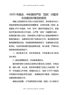 2025年国庆、中秋期间严防“四风”问题深化自查自纠情况的报告