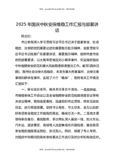 2025年国庆中秋安保维稳工作汇报与部署讲话