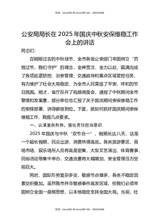 公安局局长在2025年国庆中秋安保维稳工作会上的讲话