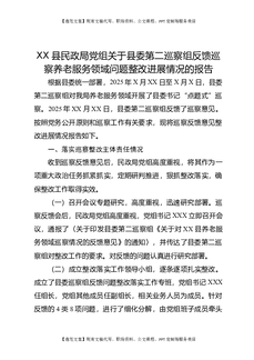 XX县民政局党组关于县委第二巡察组反馈巡察养老服务领域问题整改进展情况的报告.docx