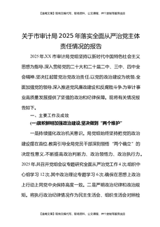 关于市审计局2025年落实全面从严治党主体责任情况的报告.docx