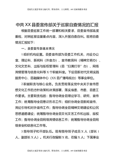中共XX县委宣传部关于巡察自查情况的汇报.docx