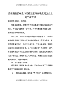 县纪委监委在全市纪检监察第三季度调度会上的工作汇报.docx