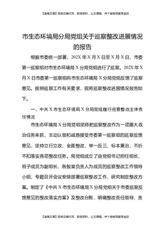 市生态环境局分局党组关于巡察整改进展情况的报告.docx