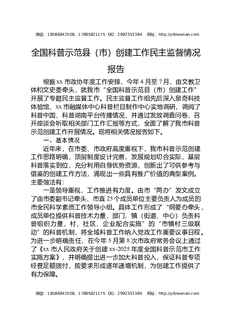 全国科普示范县(市)创建工作民主监督情况报告.docx