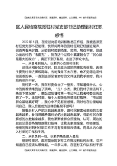 区人民检察院派驻村党支部书记助理到村任职感悟.docx