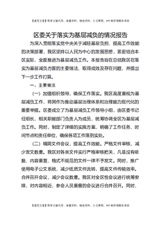 区委关于落实为基层减负的情况报告.docx