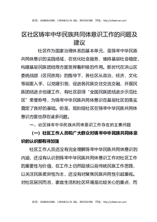 区社区铸牢中华民族共同体意识工作的问题及建议.docx