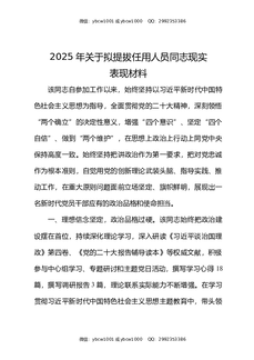 2025年关于拟提拔任用人员同志现实表现材料.docx