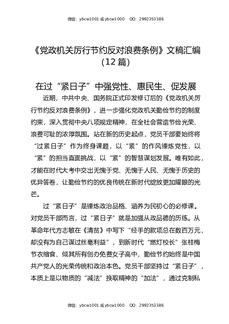 《党政机关厉行节约反对浪费条例》文稿汇编(12篇).docx