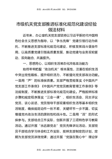 市级机关党支部推进标准化规范化建设经验做法材料.docx