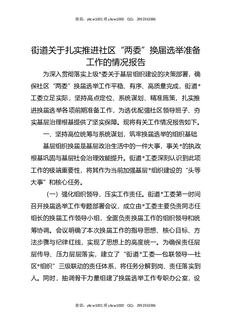 街道关于扎实推进社区“两委”换届选举准备工作的情况报告.docx