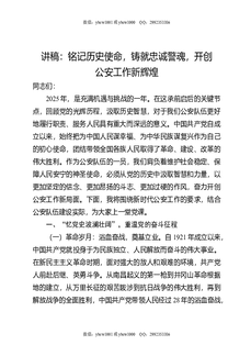 讲稿:铭记历史使命,铸就忠诚警魂,开创公安工作新辉煌.docx