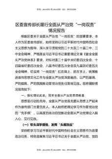 区委宣传部长履行全面从严治党“一岗双责”情况报告.docx