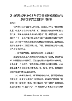 区社保局关于2025年学习贯彻新发展理念和总体国家安全观的研讨材料.docx
