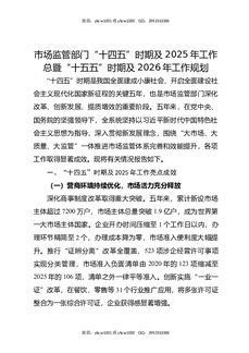 市场监管部门“十四五”时期及2025年工作总暨“十五五”时期及2026年工作规划.docx