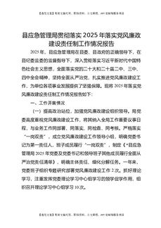 县应急管理局贯彻落实2025年落实党风廉政建设责任制工作情况报告.docx