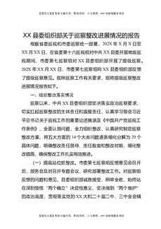 XX县委组织部关于巡察整改进展情况的报告.docx