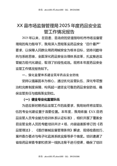 XX县市场监督管理局2025年度药品安全监管工作情况报告.docx