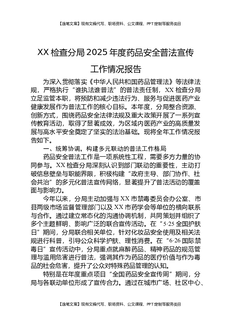 XX检查分局2025年度药品安全普法宣传工作情况报告.docx