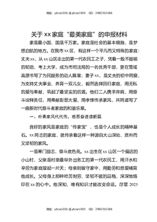 关于XX家庭“最美家庭”的申报材料.docx