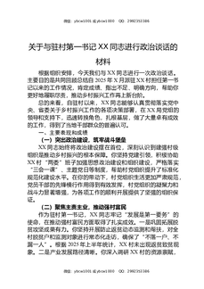 关于与驻村第一书记XX同志进行政治谈话的材料.docx