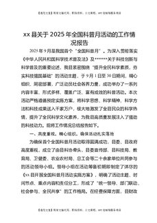 XX县关于2025年全国科普月活动的工作情况报告.docx