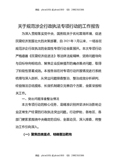 关于规范涉企行政执法专项行动的工作报告.docx