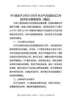 XX镇关于2023-2025年大气污染防治工作的评估与展望报告(精品).docx