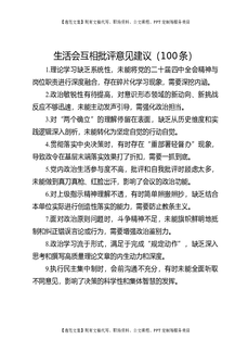 生活会互相批评意见建议(100条).docx