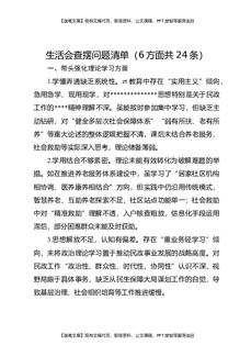 生活会查摆问题清单(6方面共24条).docx