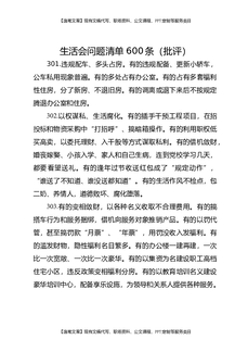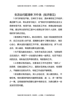 生活会问题清单300条(批评意见).doc