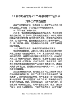 XX县市场监管局2025年度维护市场公平竞争工作情况报告.docx