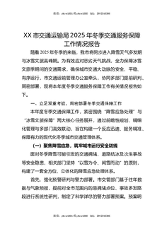 XX市交通运输局2025年冬季交通服务保障工作情况报告.docx