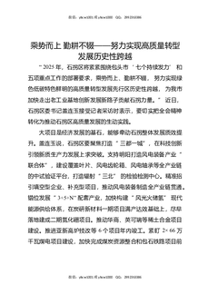 乘势而上勤耕不辍——努力实现高质量转型发展历史性跨越.docx