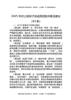 2025年对上级班子及成员的批评意见建议(63条).docx