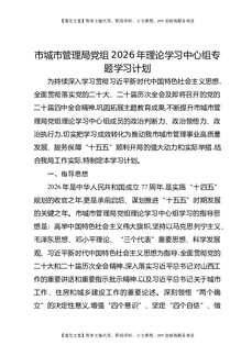 市城市管理局党组2026年理论学习中心组专题学习计划.docx