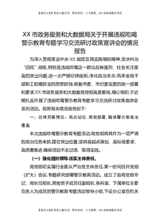 XX市政务服务和大数据局关于开展违规吃喝警示教育专题学习交流研讨政策宣讲会的情况报告3.docx