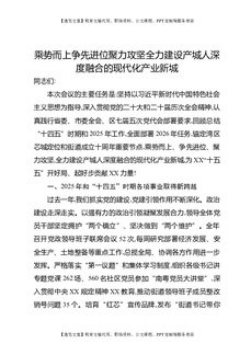 乘势而上争先进位聚力攻坚全力建设产城人深度融合的现代化产业新城.docx
