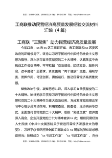 (4篇)工商联推动民营经济高质量发展经验交流材料汇编.docx