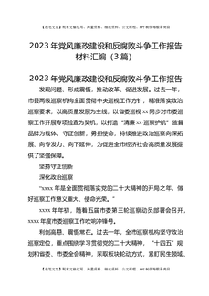 (3篇)2023年党风廉政建设和反腐败斗争工作报告材料汇编.docx
