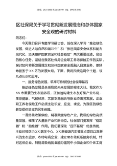 区社保局关于学习贯彻新发展理念和总体国家安全观的研讨材料.docx