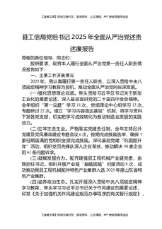 县工信局党组书记2025年全面从严治党述责述廉报告.docx