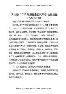 (12篇)2025年履行全面从严治X主体责任工作报告汇编.docx