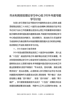 市水利局党组理论学习中心组2026年度专题学习计划.docx