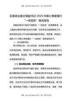 区委政法委分管副书记2025年第三季度履行一岗双责情况报告.docx